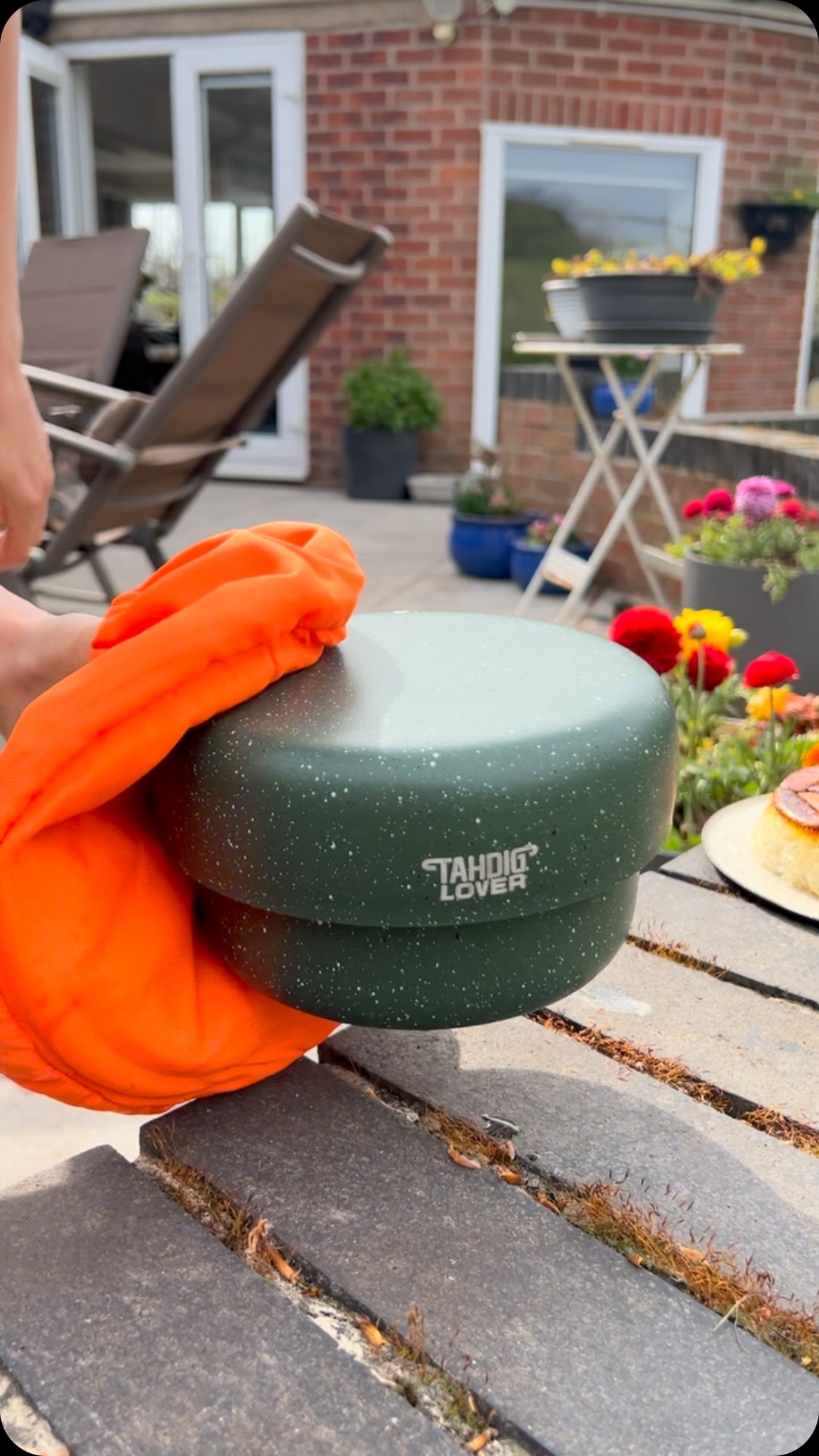Our newest creation designed for perfect tahdig. This durable piece works seamlessly on gas stoves and even open fires, making it ideal for both indoor and outdoor cooking. The innovative lid doubles as a cooking tray and can be used to create double-sided tahdig.